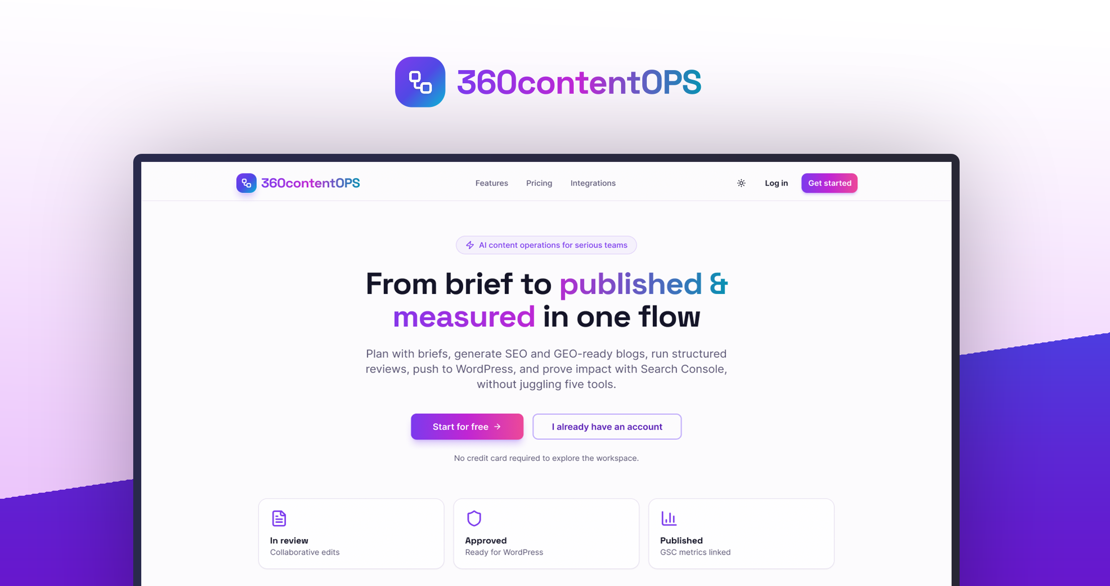 From brief to published and measured in one workflow. Plan with briefs, generate SEO and GEO-ready blogs, run structured reviews, push to WordPress, and prove impact with Search Console, without juggling five tools. Get this amazing deal today!